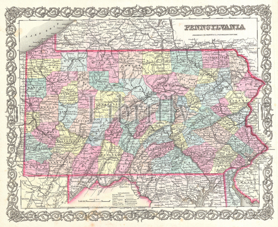 1855, Colton Map of Pennsylvania, topography, cartography, geography, land, illustration, geographic, travel, topo, chart, grid, latitude, longitude, geometric, atlas, map, vintage, ancient, history, world, paper, old, retro, earth, atlas, art, historical, decorative, navigation, aged, historic, journey, discovery, exploration, geographical, Mappa mundi, space, region, old map, antique map, rare old maps, old antique plan, ols antique map, old antique view