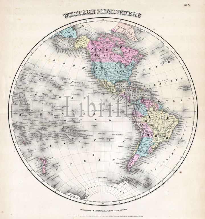 1855, Colton Map of the Western Hemisphere