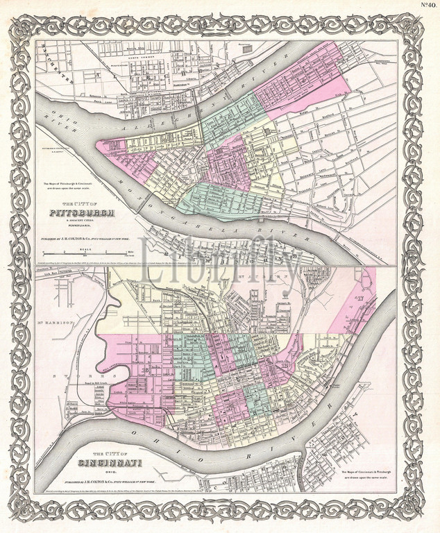 1855, Colton Plan or Map of Pittsburgh, Pennsylvania and Cincinnati, Ohio