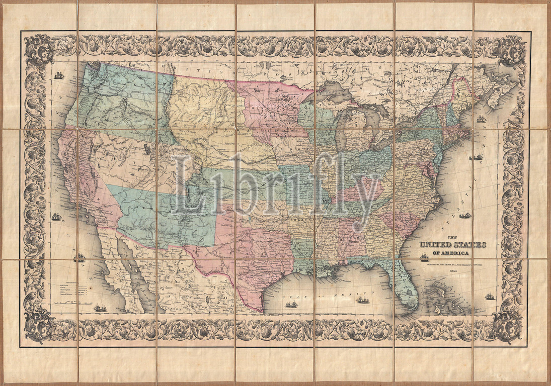 1855, Colton Pocket Map of the United States