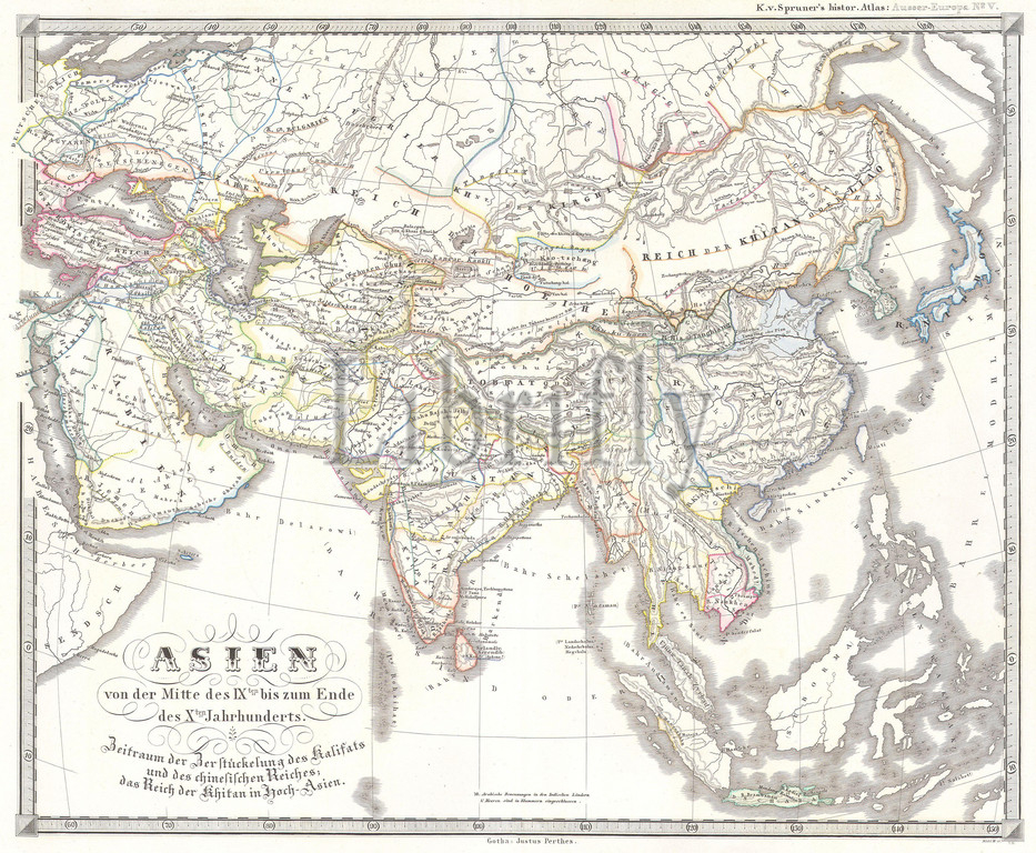 1855, Spruner Map of Asia in the 9th and 10th Centuries