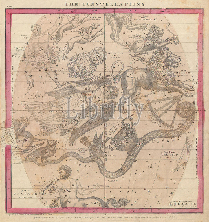 1856, Burritt, Huntington Map of the Constellations or Stars in June, May and April, topography, cartography, geography, land, illustration, geographic, travel, topo, chart, grid, latitude, longitude, geometric, atlas, map, vintage, ancient, history, world, paper, old, retro, earth, atlas, art, historical, decorative, navigation, aged, historic, journey, discovery, exploration, geographical, Mappa mundi, space, region, old map, antique map, rare old maps, old antique plan, ols antique map, old antique view