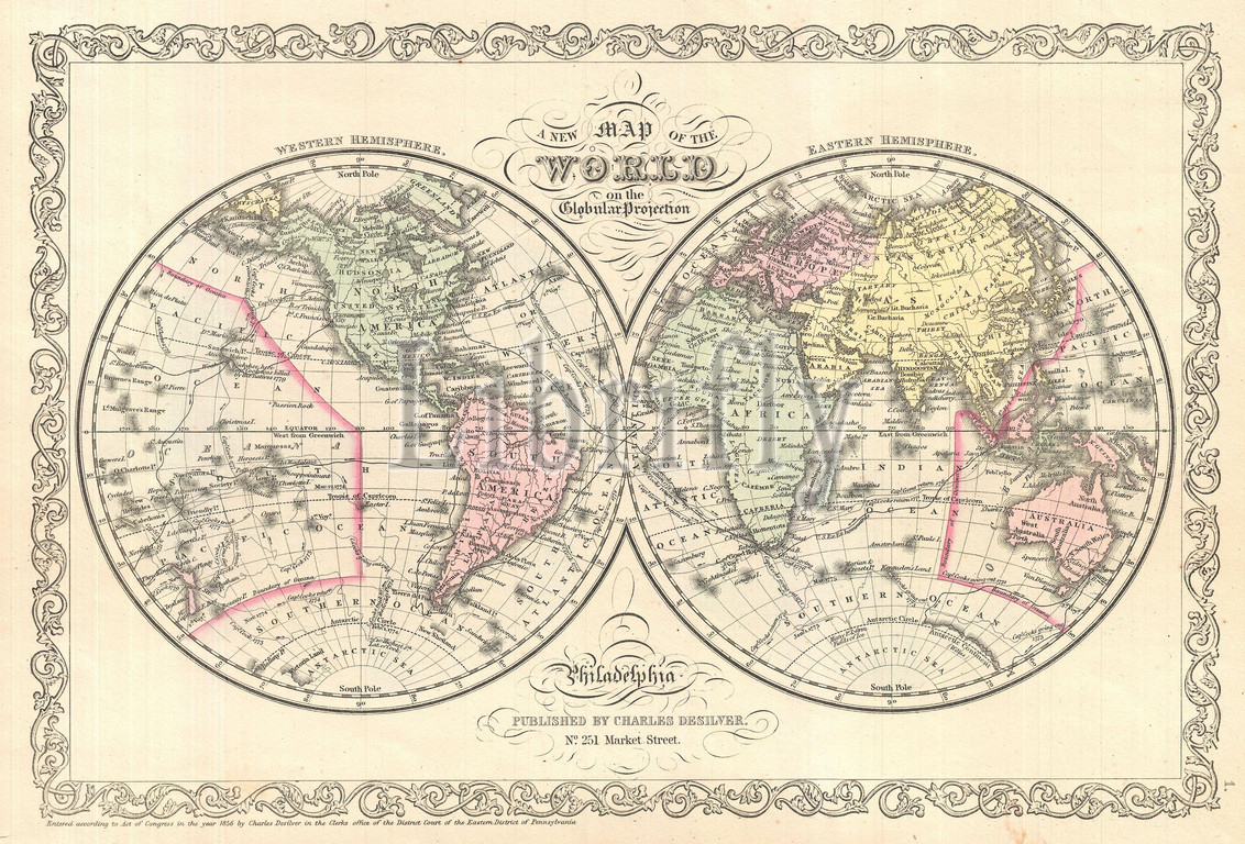 1856, Desilver Map of the World, topography, cartography, geography, land, illustration, geographic, travel, topo, chart, grid, latitude, longitude, geometric, atlas, map, vintage, ancient, history, world, paper, old, retro, earth, atlas, art, historical, decorative, navigation, aged, historic, journey, discovery, exploration, geographical, Mappa mundi, space, region, old map, antique map, rare old maps, old antique plan, ols antique map, old antique view
