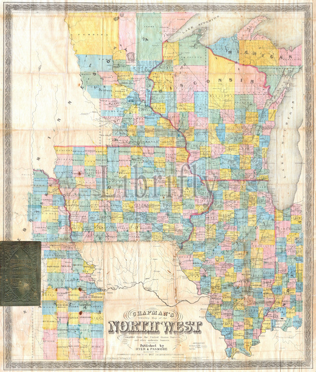1857, Chapman Pocket Map of the North West, Illinois, Wisconsin, Iowa