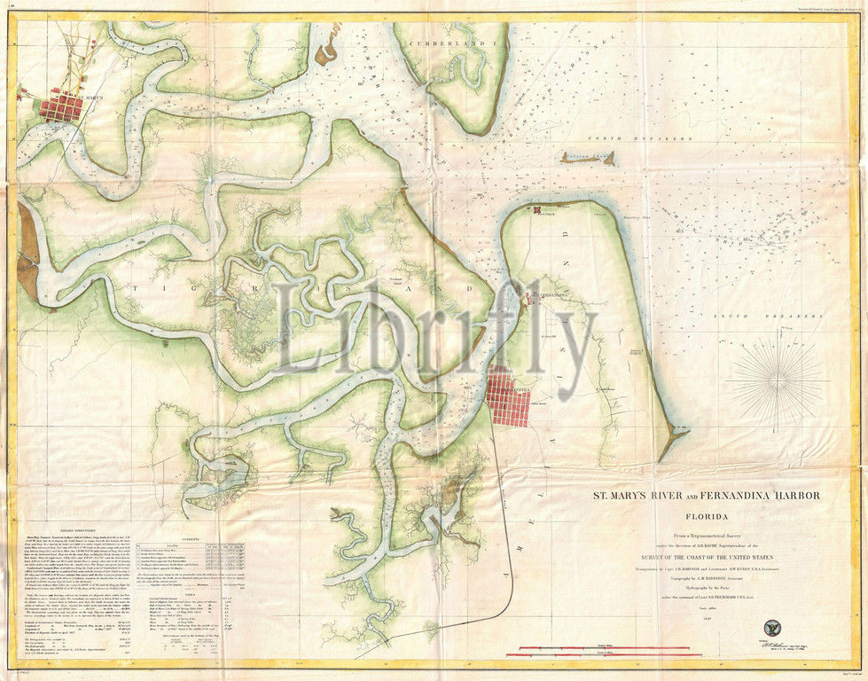 1857, U.S. Coast Survey Map or Chart of St. Mary's River and Fernandina Harbor, Florida