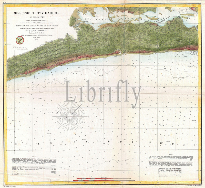 1857, U.S. Coast Survey Map or Chart of Mississippi City Harbor, Mississippi, topography, cartography, geography, land, illustration, geographic, travel, topo, chart, grid, latitude, longitude, geometric, atlas, map, vintage, ancient, history, world, paper, old, retro, earth, atlas, art, historical, decorative, navigation, aged, historic, journey, discovery, exploration, geographical, Mappa mundi, space, region, old map, antique map, rare old maps, old antique plan, ols antique map, old antique view