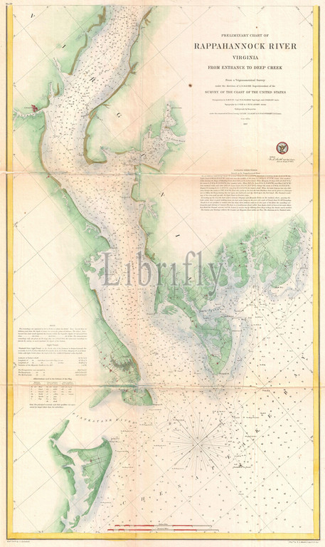 1857, U.S. Coast Survey Map or Chart of the Rapphannock River South, Virginia, topography, cartography, geography, land, illustration, geographic, travel, topo, chart, grid, latitude, longitude, geometric, atlas, map, vintage, ancient, history, world, paper, old, retro, earth, atlas, art, historical, decorative, navigation, aged, historic, journey, discovery, exploration, geographical, Mappa mundi, space, region, old map, antique map, rare old maps, old antique plan, ols antique map, old antique view