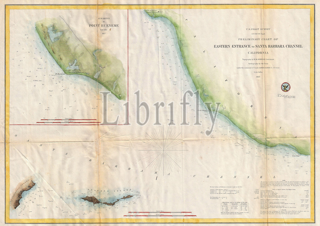 1857, U.S. Coast Survey Map of the Eastern Entrance to Santa Barbara Channel