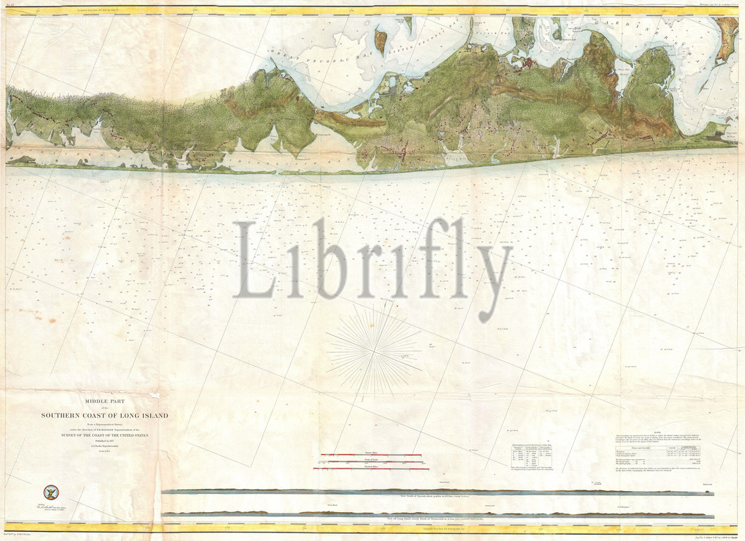 1857, U.S. Coast Survey Map of Eastern Long Island, Hamptons, Amagansett