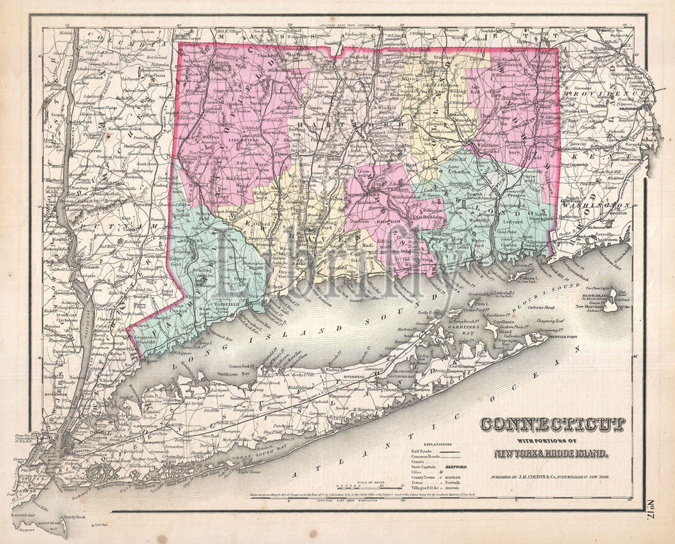 1857, Colton Map of Connecticut and Long Island
