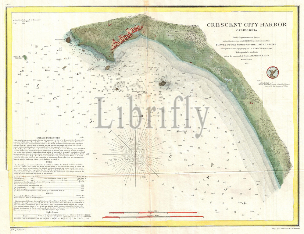 1859, U.S. Coast Survey Map or Nautical Chart of Crescent City, California