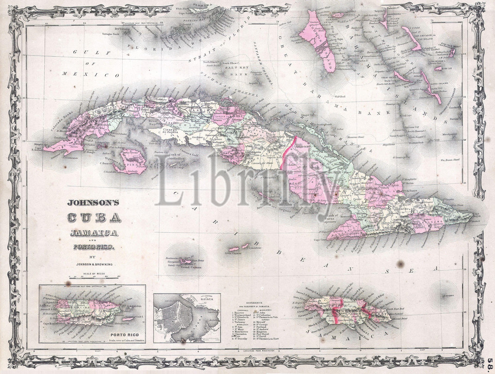 1861, Johnson's Map of Cuba, Jamaica and Porto Rico