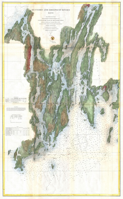 1862, U.S. Coast Survey Map of the Kennebec and Sheepscot Rivers, Maine, Nautical Chart