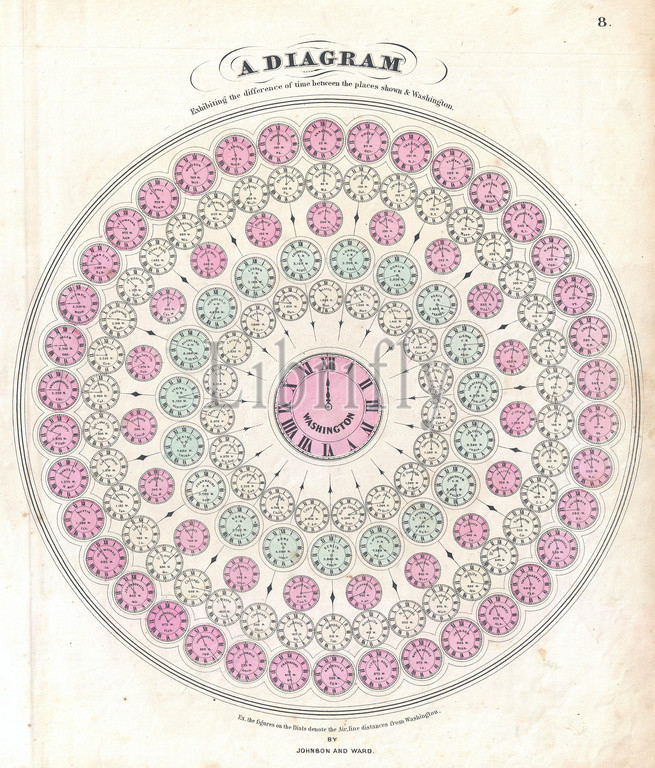 1862, Johnson Diagram of the World Time Zones from Washington