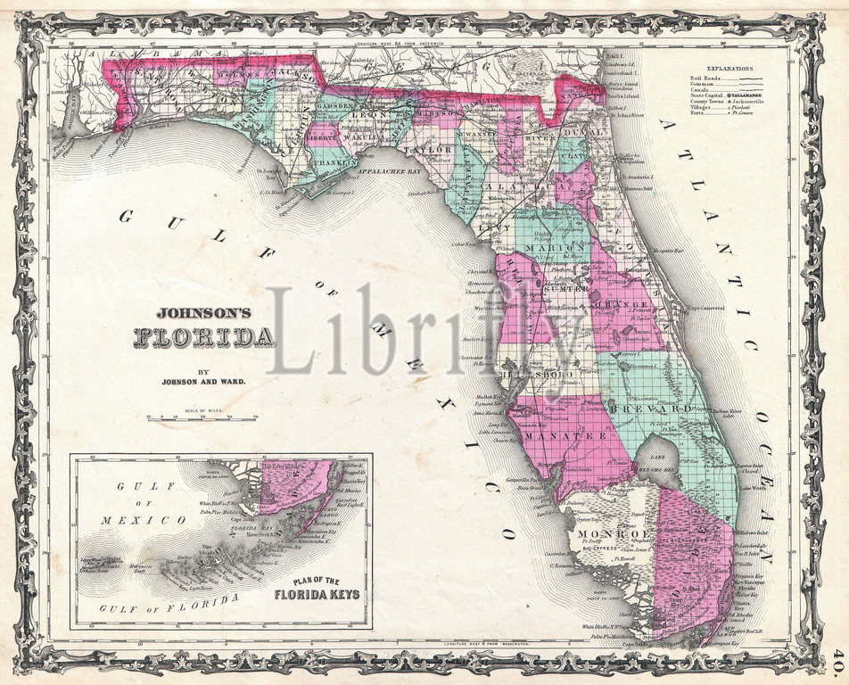 1862, Johnson Map of Florida, topography, cartography, geography, land, illustration, geographic, travel, topo, chart, grid, latitude, longitude, geometric, atlas, map, vintage, ancient, history, world, paper, old, retro, earth, atlas, art, historical, decorative, navigation, aged, historic, journey, discovery, exploration, geographical, Mappa mundi, space, region, old map, antique map, rare old maps, old antique plan, ols antique map, old antique view