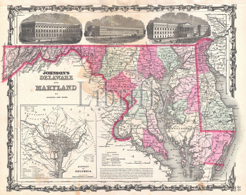 1862, Johnson Map of Maryland and Delaware