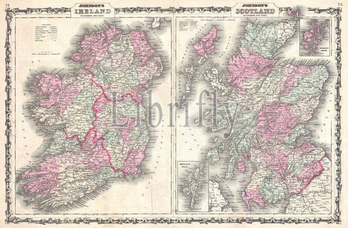 1862, Johnson Map of Scotland and Ireland