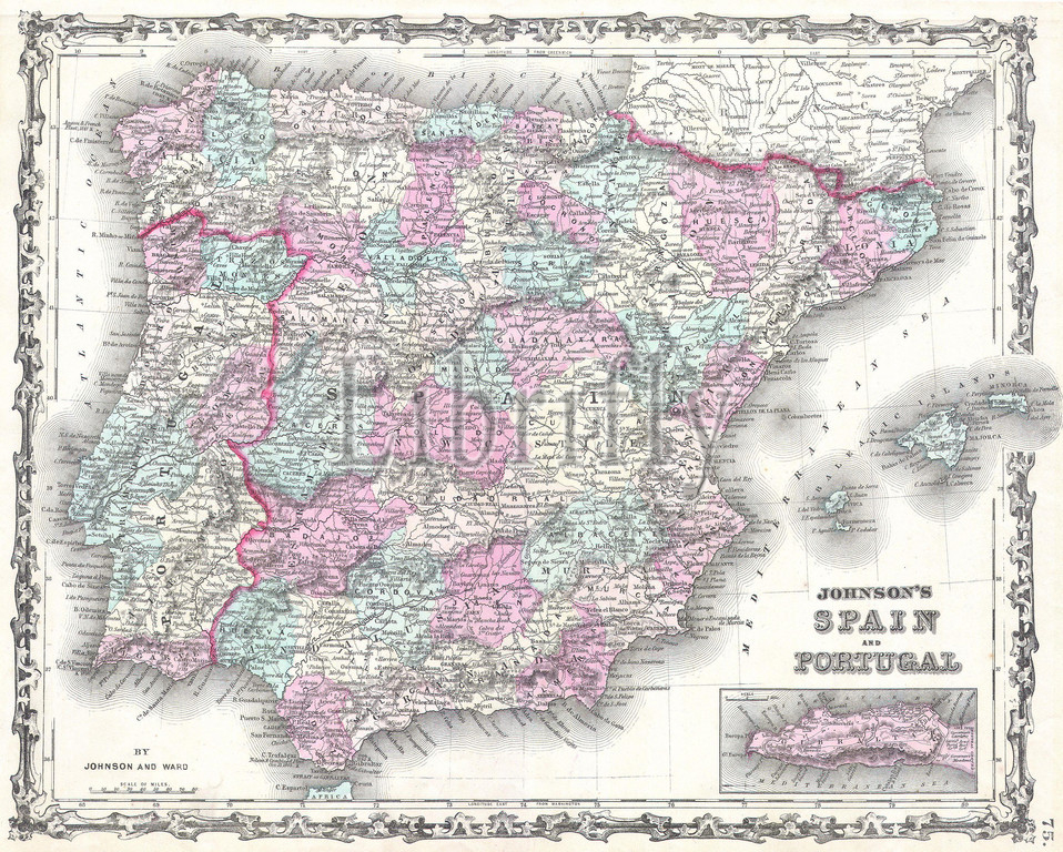 1862, Johnson Map of Spain and Portugal