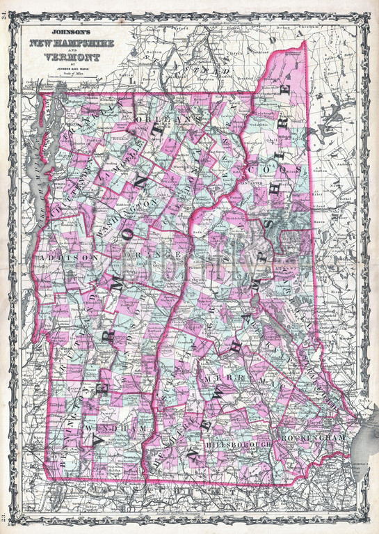 1862, Johnson Map of Vermont and New Hampshire