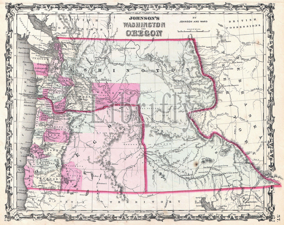 1862, Johnson Map of Washington and Oregon w-Idaho