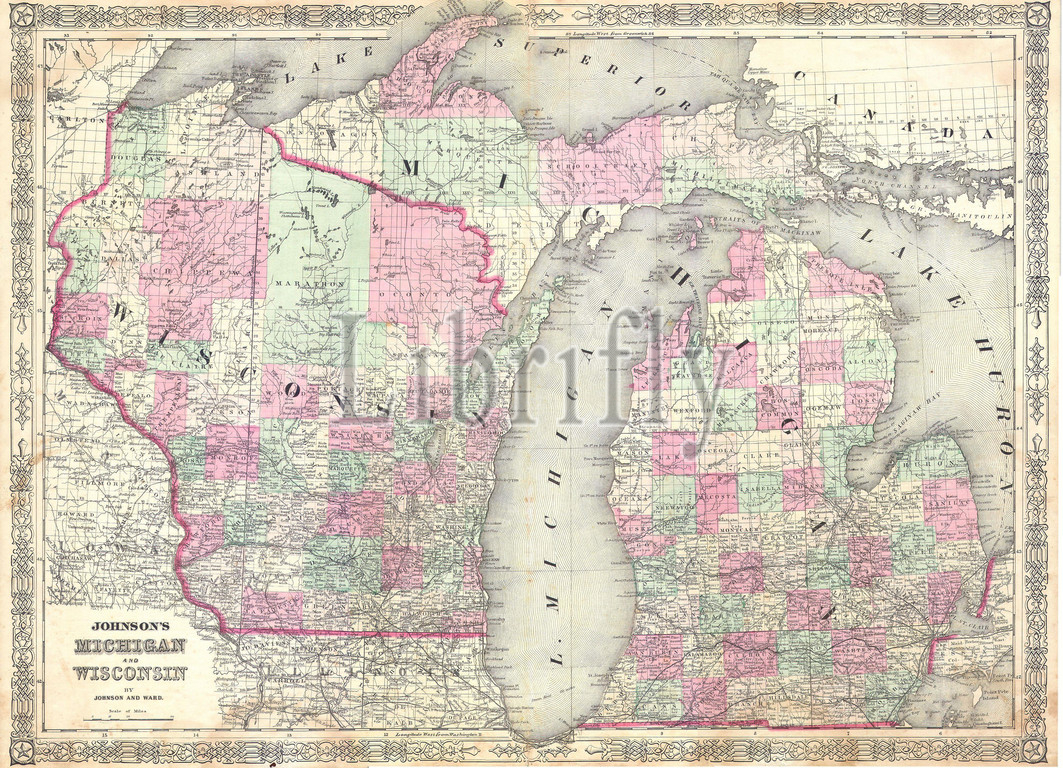 1863, Johnson Map of Michigan and Wisconsin, topography, cartography, geography, land, illustration, geographic, travel, topo, chart, grid, latitude, longitude, geometric, atlas, map, vintage, ancient, history, world, paper, old, retro, earth, atlas, art, historical, decorative, navigation, aged, historic, journey, discovery, exploration, geographical, Mappa mundi, space, region, old map, antique map, rare old maps, old antique plan, ols antique map, old antique view