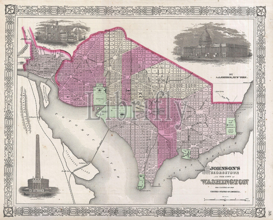 1864, Johnson Map of Washington D.C. and Georgetown