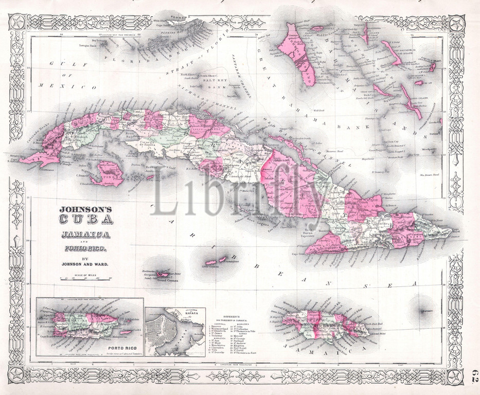 1864, Johnson's Map of Cuba, Jamaica, the Bahamas and Puerto Rico
