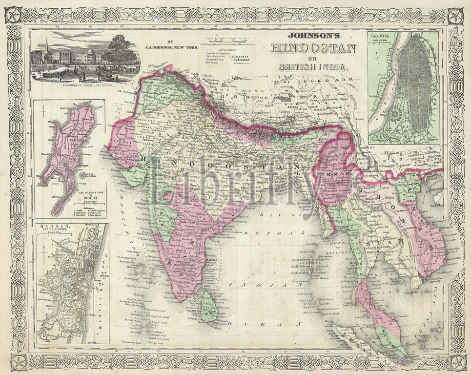 1864, Johnson's Map of India, Hindostan or British India