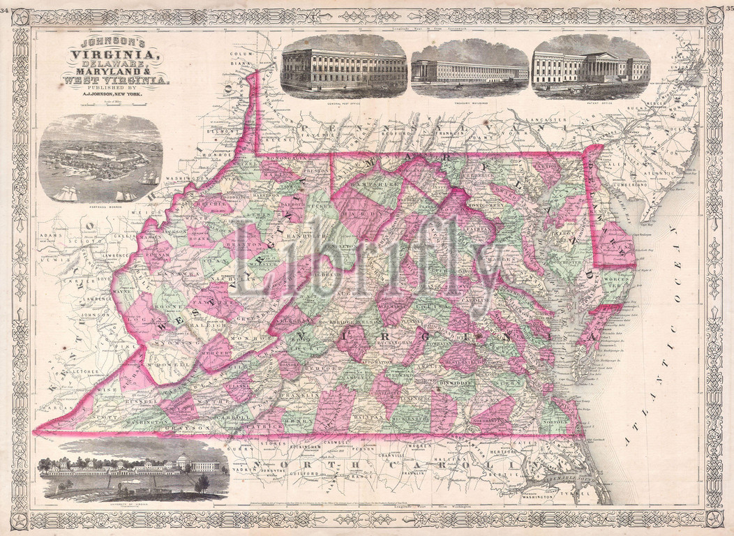 1864, Johnson's Map of Virginia, Delaware, Maryland and West Virginia
