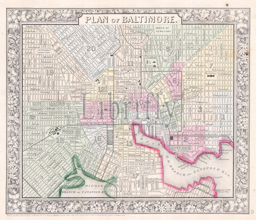 1864, Mitchell Map of Baltimore, Maryland