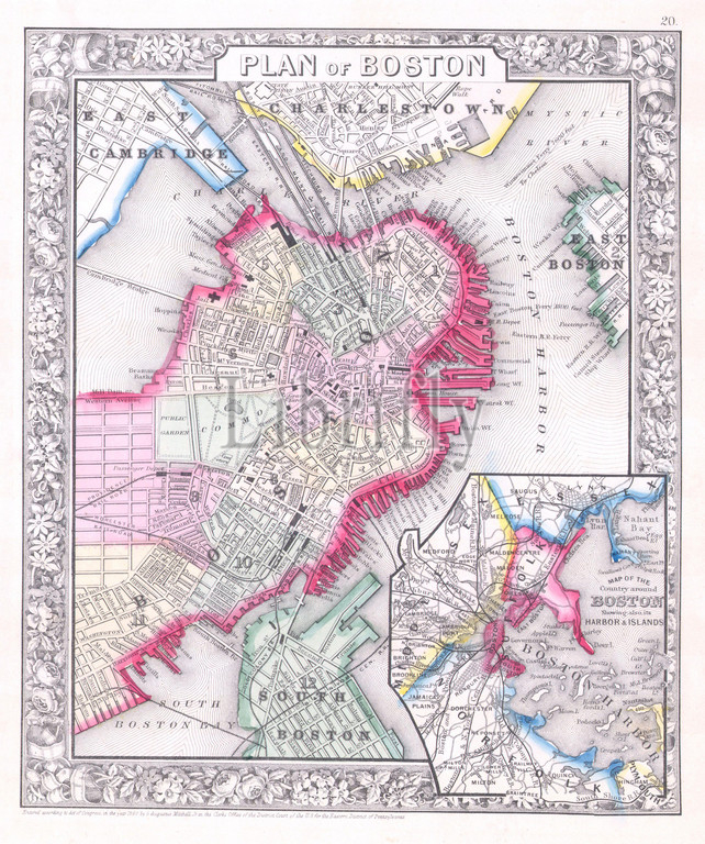 1864, Mitchell Map of Boston, Massachusetts