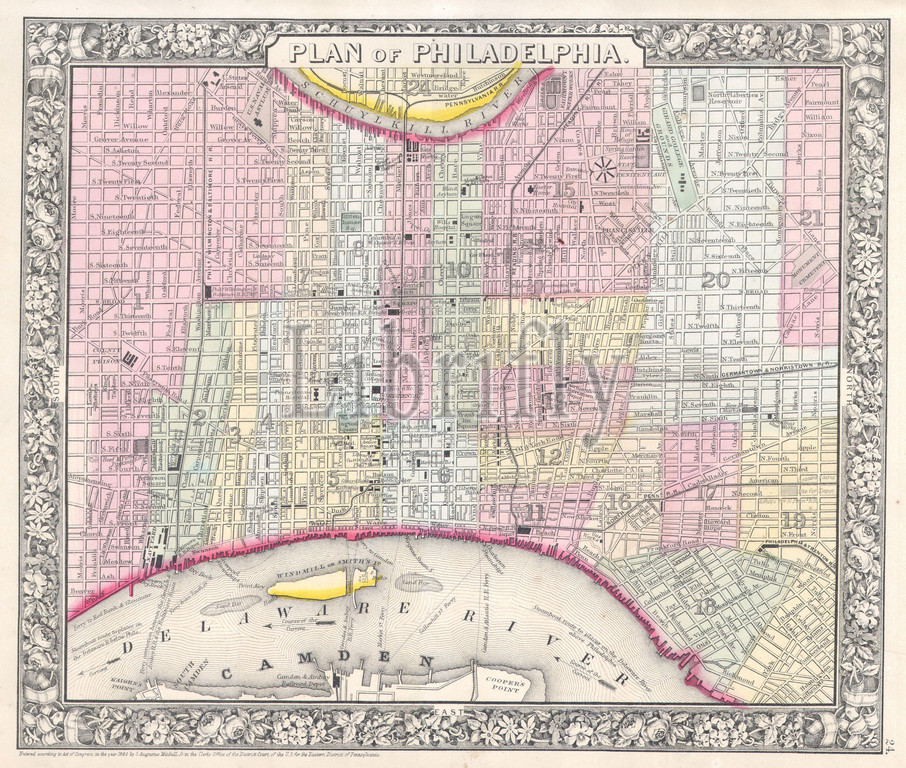 1864, Mitchell Plan or Map of Philadelphia, Pennsylvania