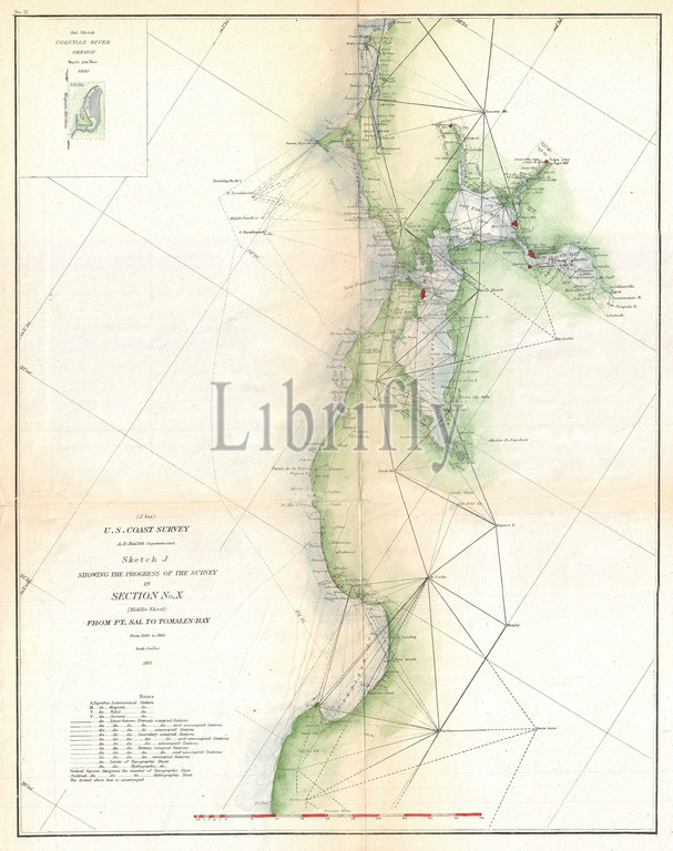 1865, U.S. Coast Survey Triangulation Map of San Francisco Bay