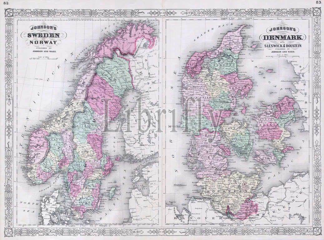 1865, Johnson Map of Sweden, Norway and Denmark
