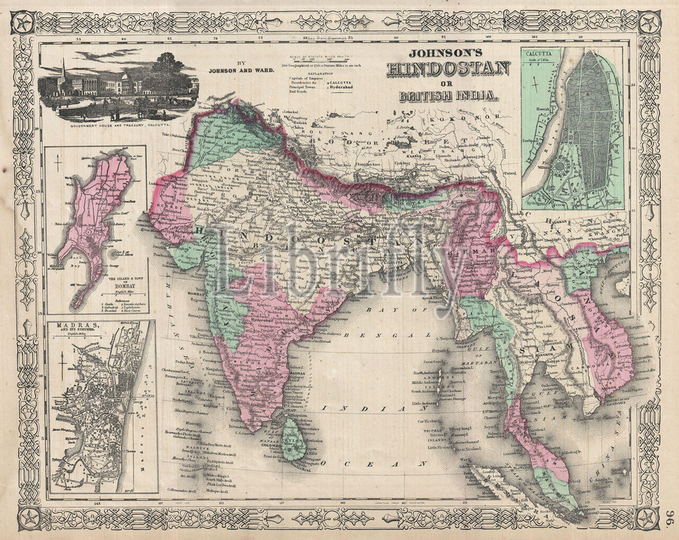 1865, Johnson's Map of India, Hindostan or British India