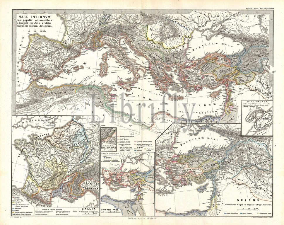 1865, Spruner Map of the Mediterranean from Pompey to the Battle of Actium