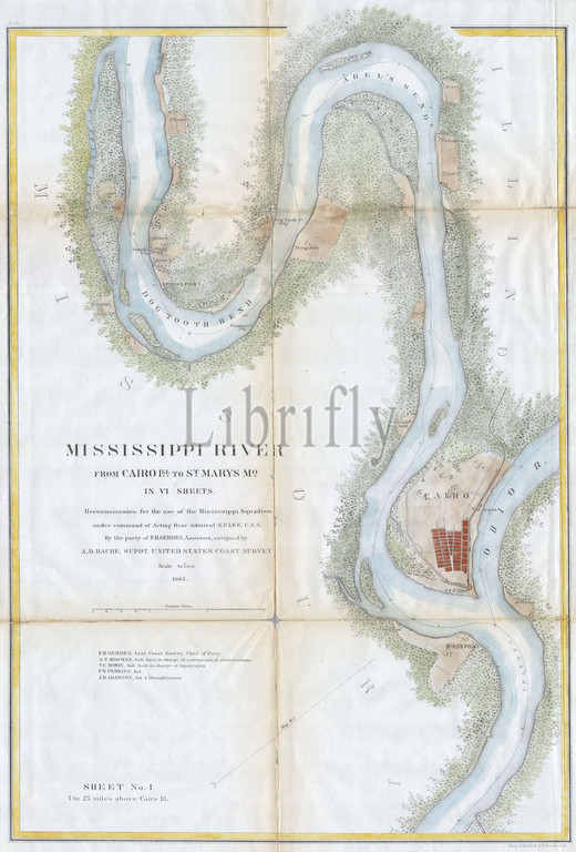 1865, U.S.C.S. Chart or Map of the Mississippi River around Cairo Illinois