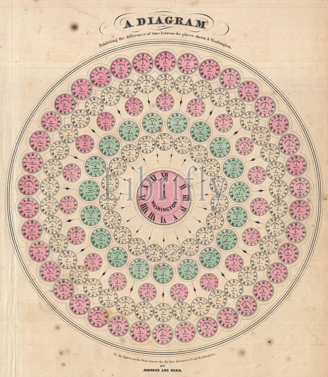 1866, Johnson Chart of World Time Zones, from Washington