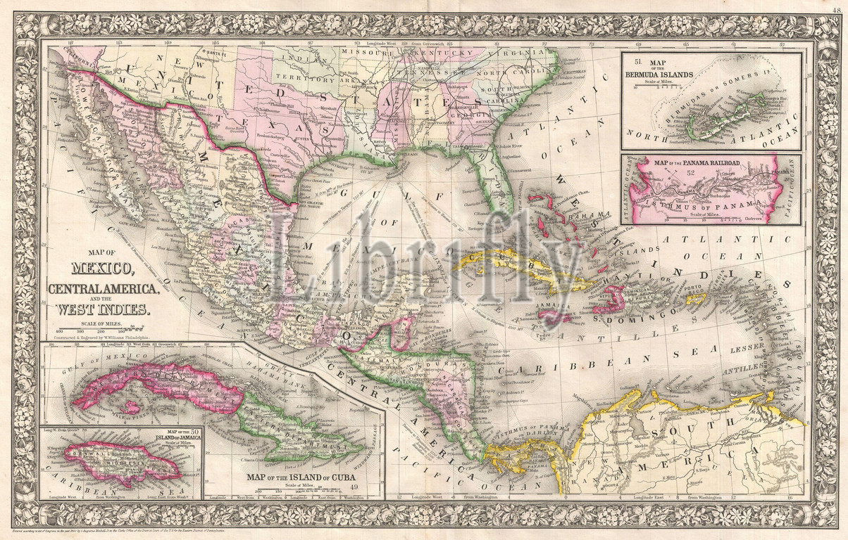 1866, Mitchell Map of Mexico and the West Indies