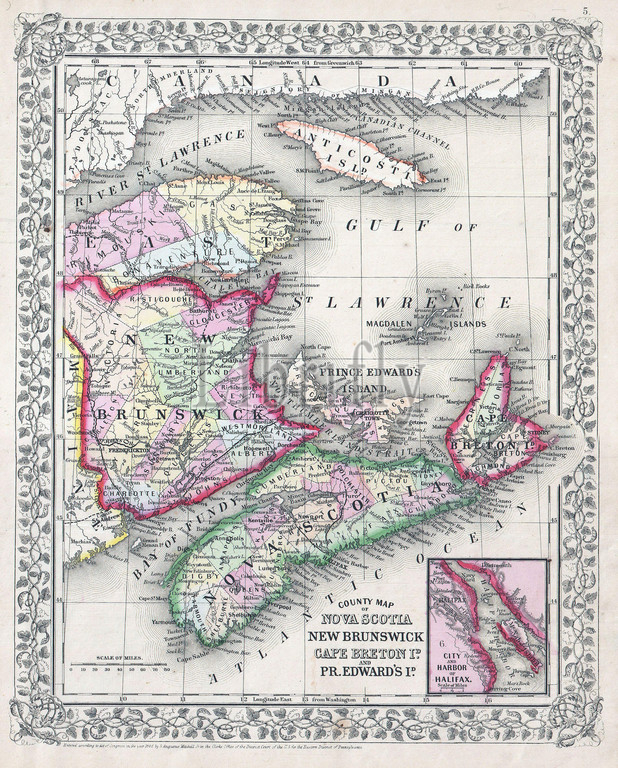 1866, Mitchell Map of New Brunswick and Nova Scotia, Canada
