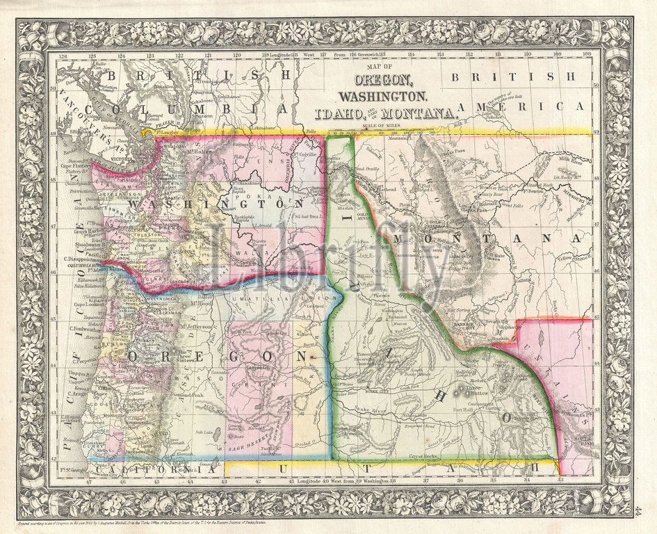 1866, Mitchell Map of Washington, Oregon, Idaho and Montana