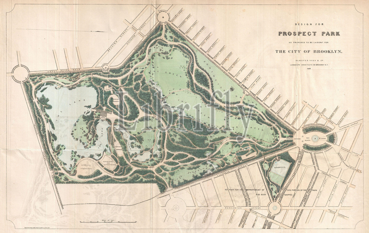 1868, Vaux and Olmstead Map of Prospect Park, Brooklyn, New York
