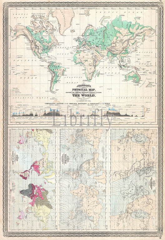 1870, Johnson Climate Map of the World w- Physical Map, Tidal Map, Races and Declination, topography, cartography, geography, land, illustration, geographic, travel, topo, chart, grid, latitude, longitude, geometric, atlas, map, vintage, ancient, history, world, paper, old, retro, earth, atlas, art, historical, decorative, navigation, aged, historic, journey, discovery, exploration, geographical, Mappa mundi, space, region, old map, antique map, rare old maps, old antique plan, ols antique map, old antique view
