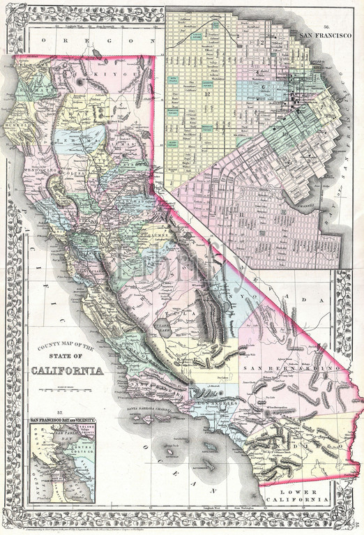 1872, Mitchell Map of California w- San Francisco Inset, topography, cartography, geography, land, illustration, geographic, travel, topo, chart, grid, latitude, longitude, geometric, atlas, map, vintage, ancient, history, world, paper, old, retro, earth, atlas, art, historical, decorative, navigation, aged, historic, journey, discovery, exploration, geographical, Mappa mundi, space, region, old map, antique map, rare old maps, old antique plan, ols antique map, old antique view