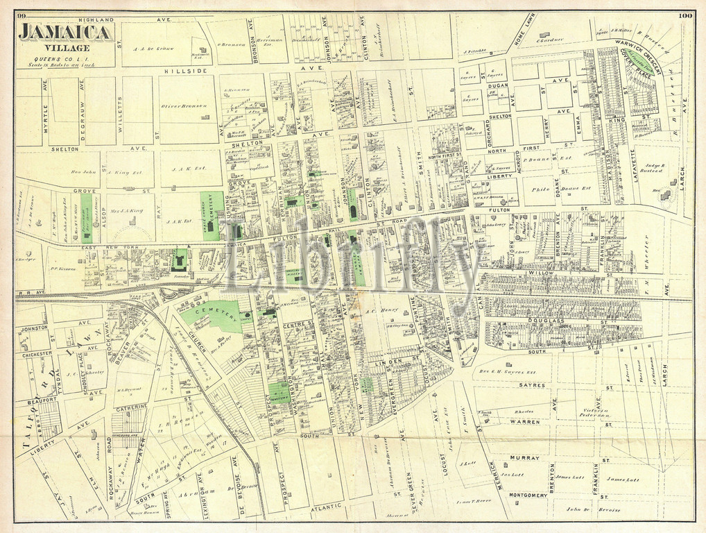 1873, Beers Map of Jamaica Village, Queens, New York City
