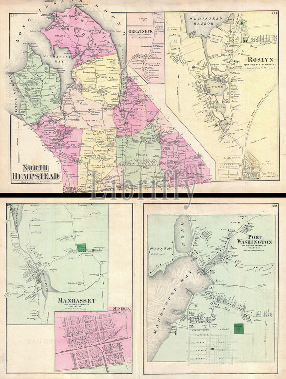 1873, Beers Map of North Hempstead, Great Neck, and Roslyn, Long Island, New York