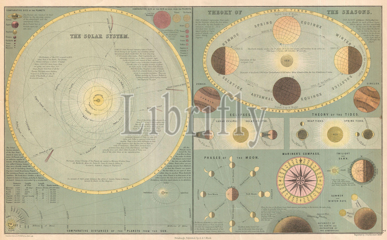 1873, A. and C. Black Map or Chart of the Solar System, topography, cartography, geography, land, illustration, geographic, travel, topo, chart, grid, latitude, longitude, geometric, atlas, map, vintage, ancient, history, world, paper, old, retro, earth, atlas, art, historical, decorative, navigation, aged, historic, journey, discovery, exploration, geographical, Mappa mundi, space, region, old map, antique map, rare old maps, old antique plan, ols antique map, old antique view