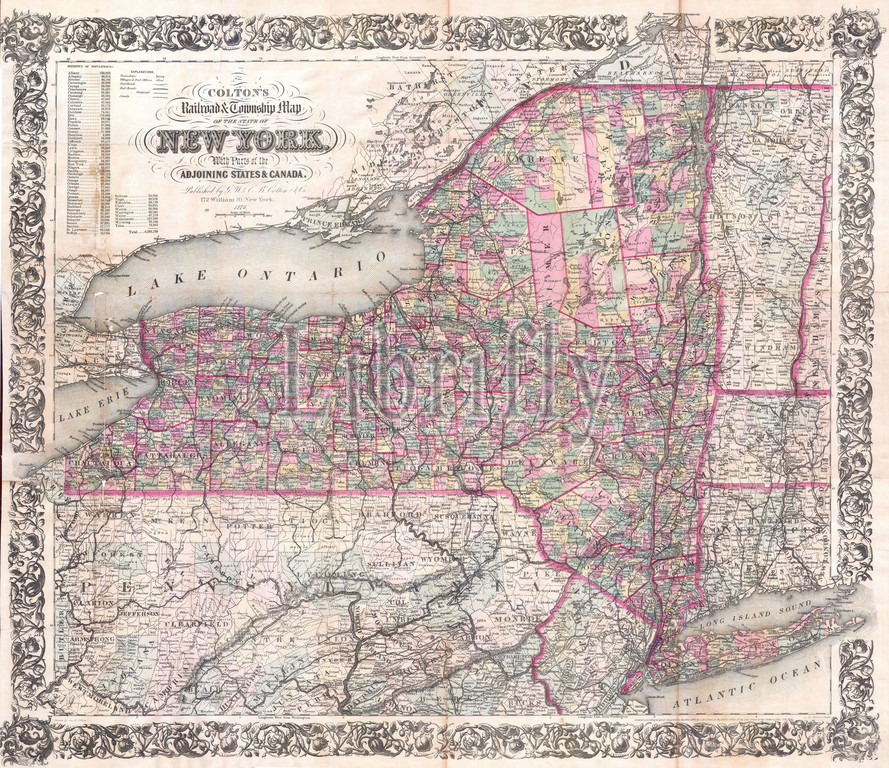 1876, Colton Railroad Pocket Map of New York State