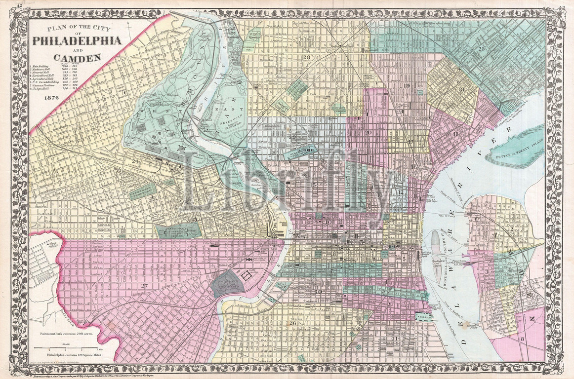 1876, Mitchell Map of Philadelphia, Pennsylvania