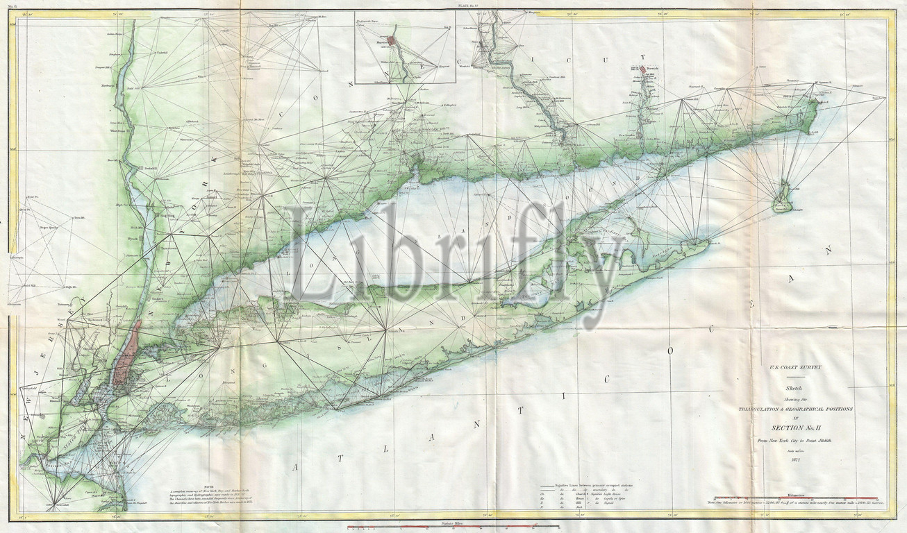 1877, U.S. Coast Survey Map of Long Island and New York City